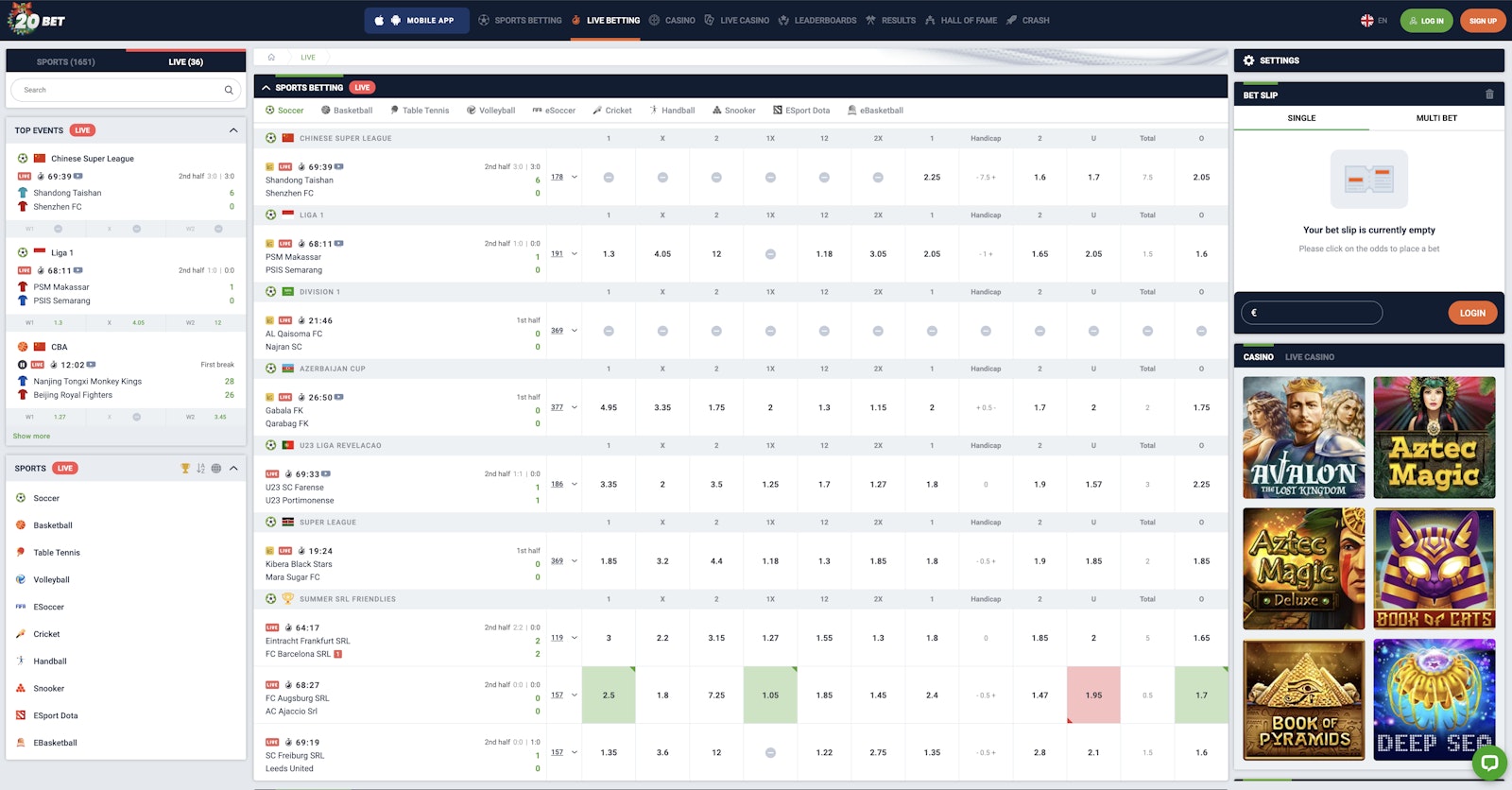 20Bet might be just the right fit for you if you like betting on many different sports, niche sports or esports.