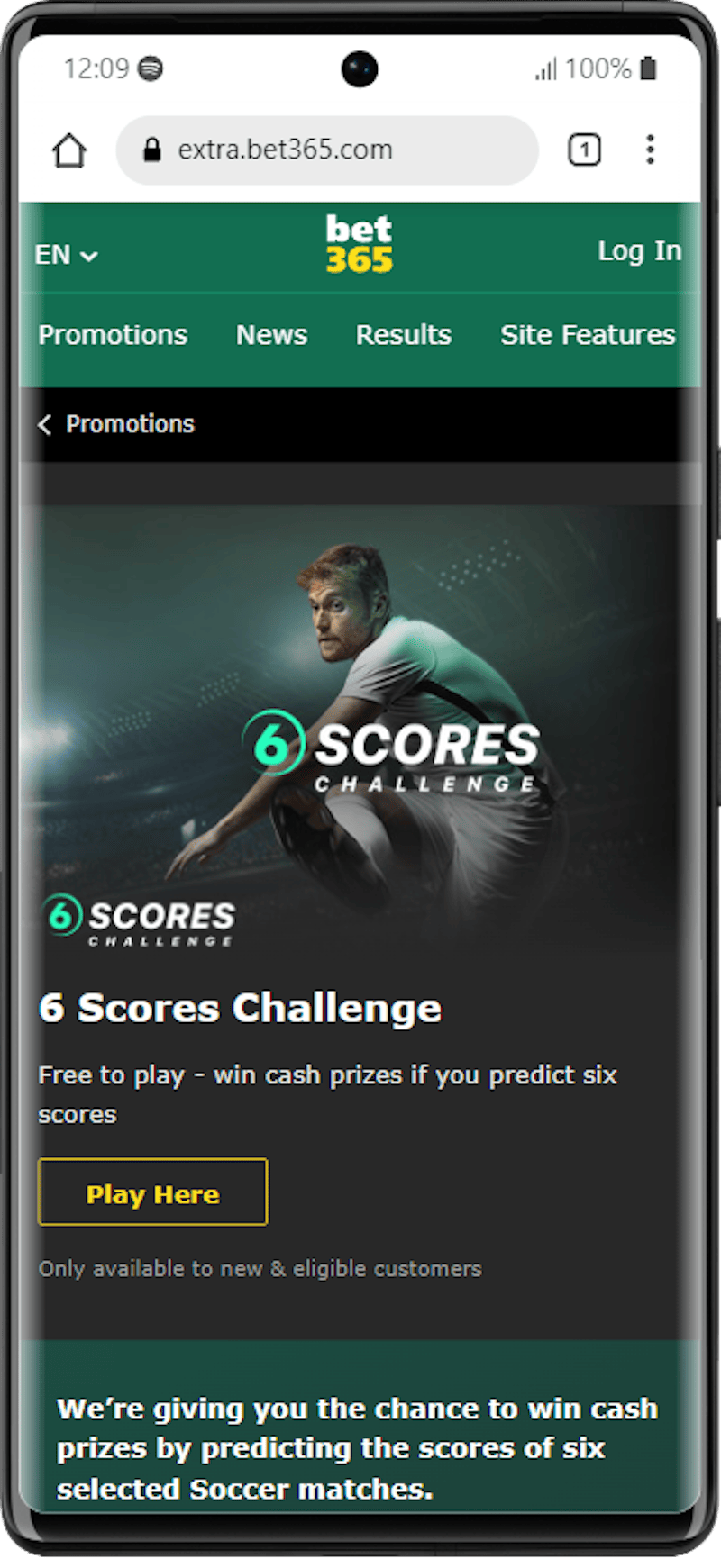 You need to be registered with Bet365 in order to play 6 Scores Challenge.