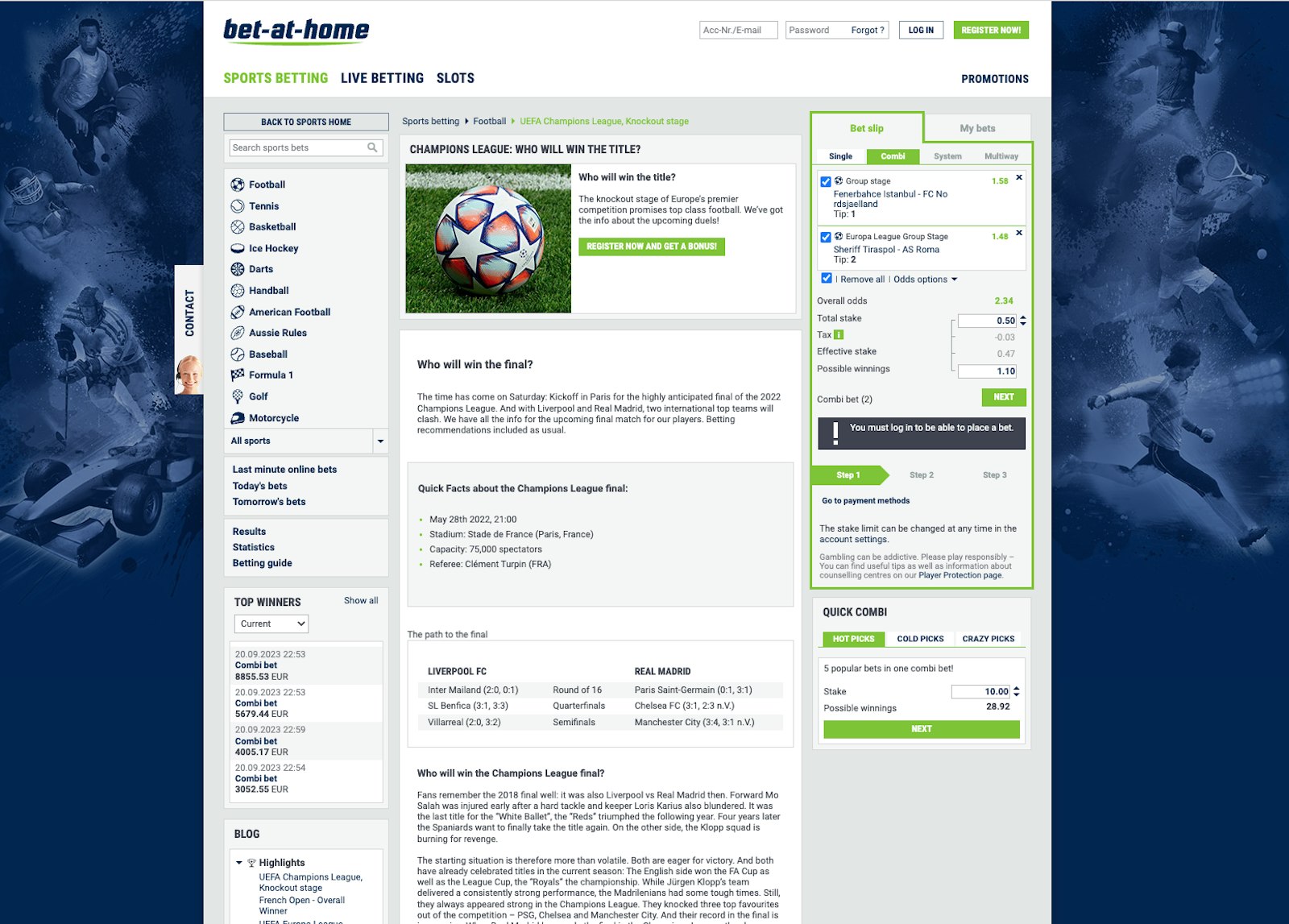 Additionally, Bet-at-home provides extra features like a blog, comprehensive statistics, and a betting guide, all designed to help refine your betting strategy.