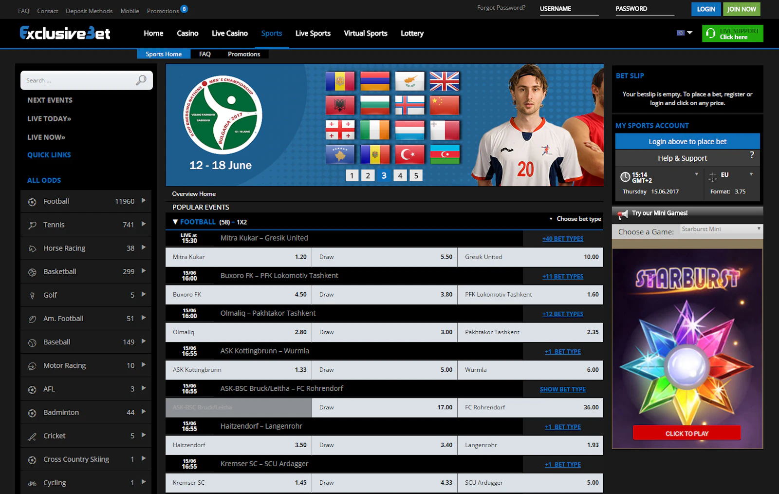 New players at ExclusiveBet are welcomed with a first deposit bonus of 100% up to €100.