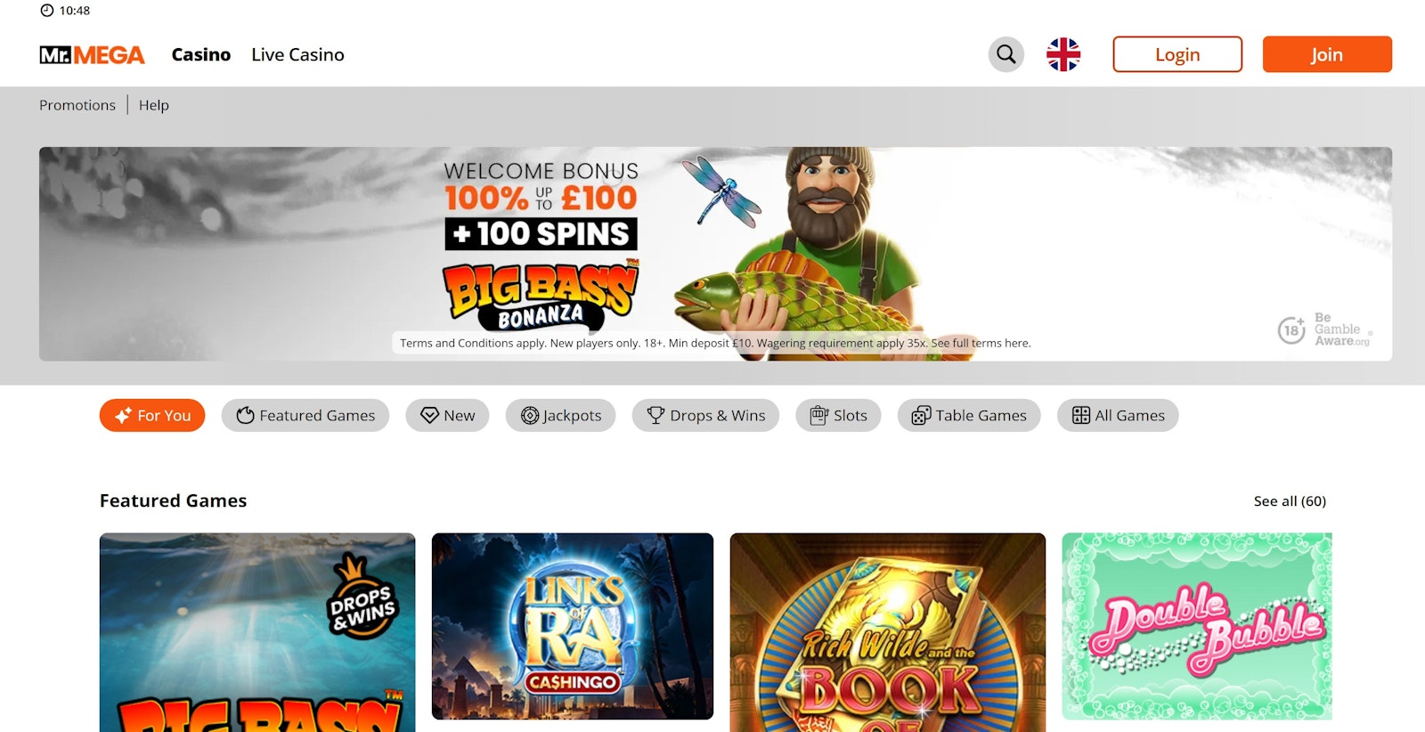 - Mr Mega will double your first deposit (up to £100!)