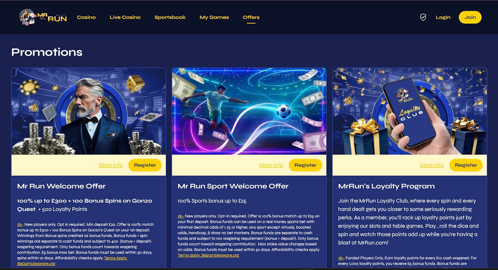 Having recently launched, Mr.Run offers players a completely fresh experience, meaning you can take advantage of a brand new welcome offer too!