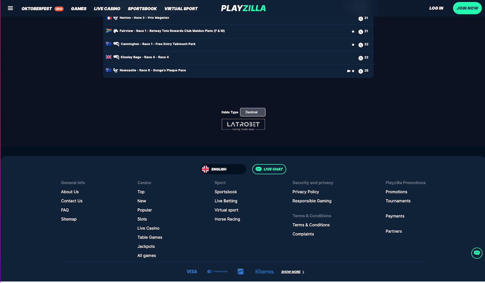 The full list of virtual sports at Playzilla is as follows: