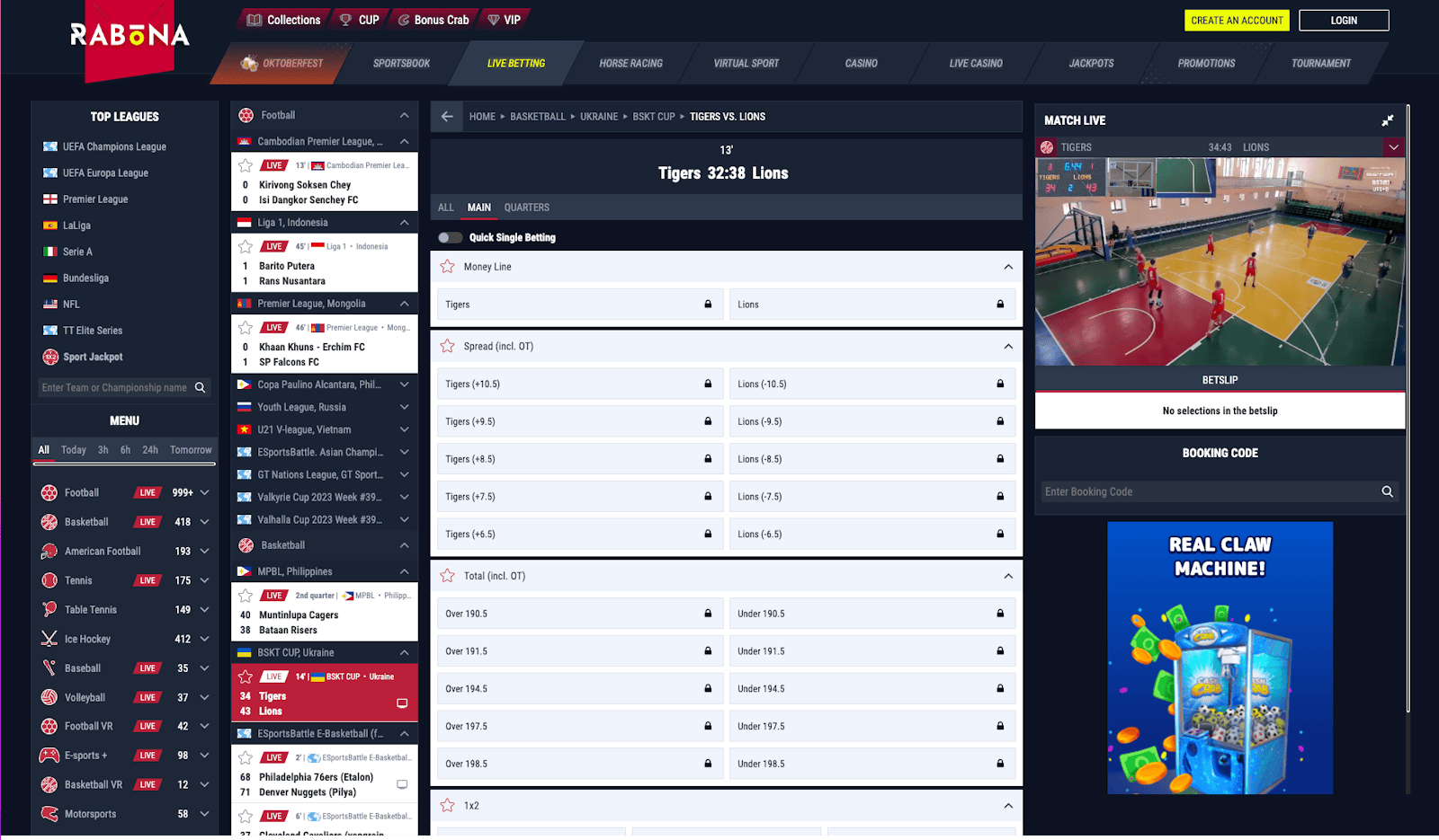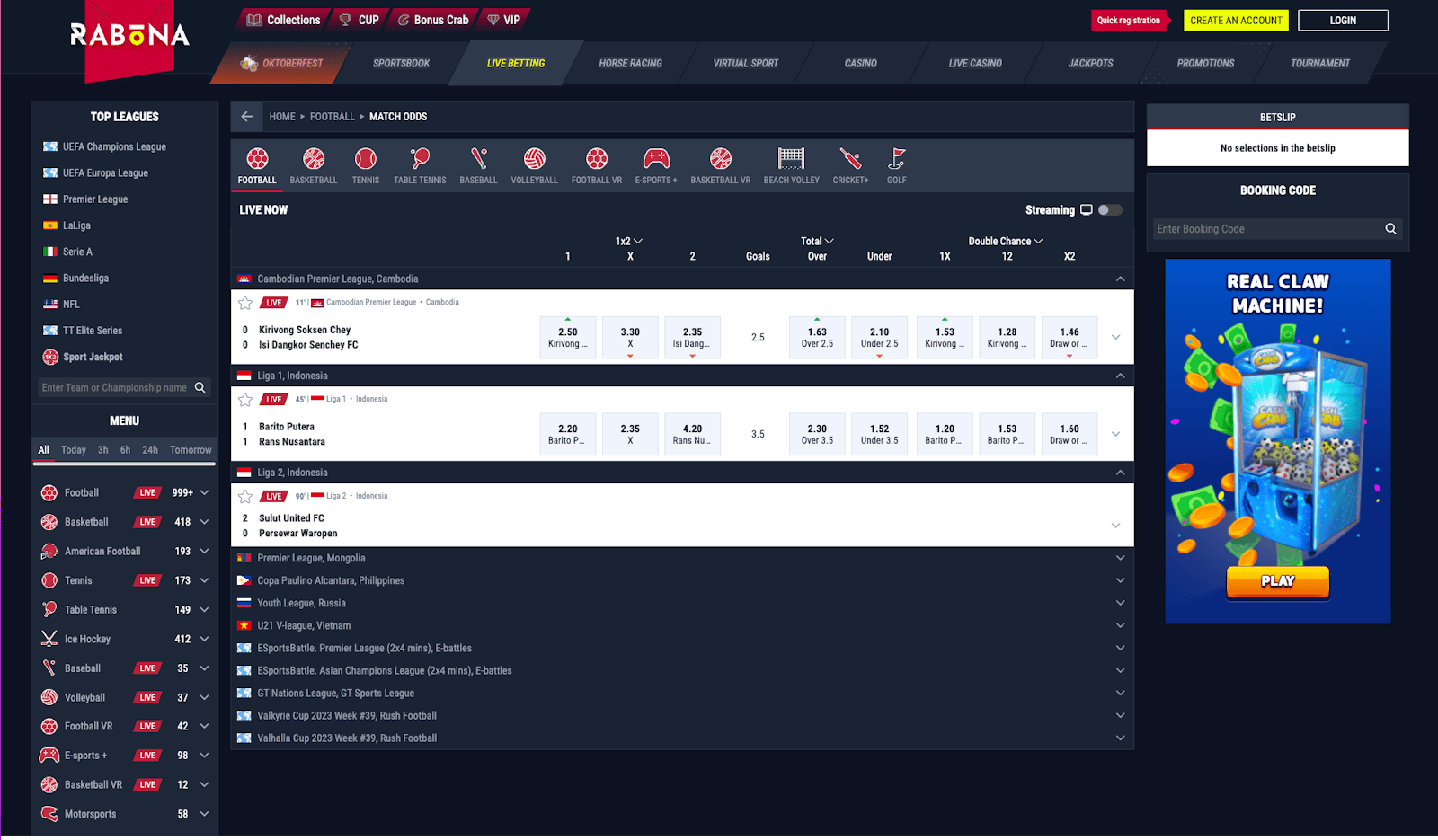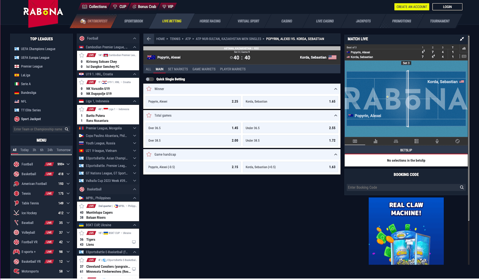 Moreover, Rabona enriches the real-time betting experience with a ticker and live statistics, ensuring you stay well-informed and engaged throughout the matches.