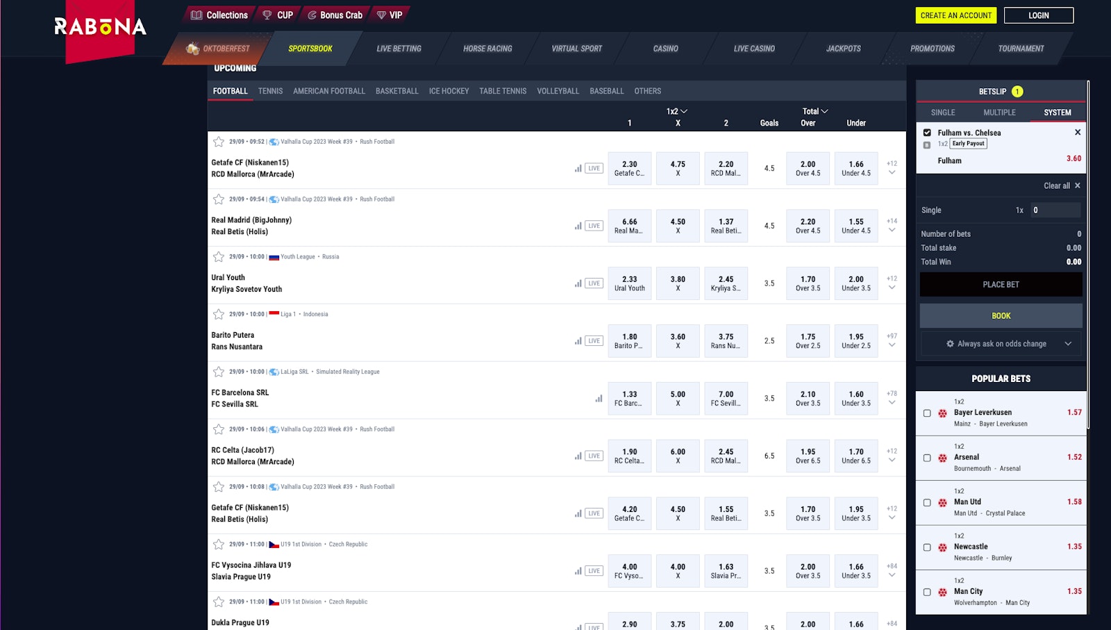 Rabona delivers an excellent live betting experience that integrates both traditional sports and virtual sports within it, offering versatility in your wagering choices.