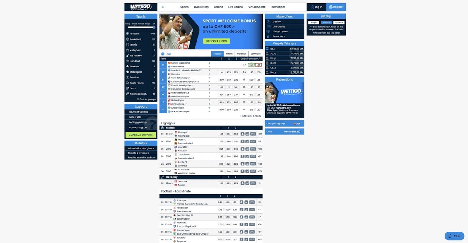 If you love betting on sports, Wettigo has a weekly bonus, which lets you get 20 CHF as a risk-free bet if you wager 100 CHF.